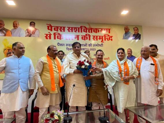 Gurugram News: दिल्ली से सटे साइबर सिटी गुरुग्राम में किसानों की समृद्धि के लिए शुक्रवार (13 अक्टूबर) को गुरुग्राम में प्राइमरी एग्रीकल्चर कोआपरेटिव सोसाइटी (पैक्स) के द्वारा एक संगोष्ठी आयोजित की गई. बीजेपी के गुरुकमल में कार्यालय में आयोजित इस कार्यक्रम में मुख्य अतिथि के रूप में बीजेपी के प्रदेश अध्यक्ष ओम प्रकाश धनखड़ रहे . आयोजित कार्यक्रम में प्रदेश अध्यक्ष ओमप्रकाश धनखड़ ने कहा कि पैक्स सशक्तिकरण योजना किसानों की समृद्धि में कारगर साबित हो रही है.
