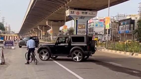 इस दौरान साइकिल सवार गाड़ी की चपेट में आने से बाल बाल बच गया. वीडियो में स्टंटबाज गुरुग्राम पुलिस को ठेंगा दिखाते नजर आ रहे हैं. वायरल वीडियो सोहना रोड का बताया जा रहा है. थार में बैठा युवक सड़क पर बिना किसी भय के स्टंट कर रहा है. सामने से साइकिल पर आ रहे व्यक्ति को बड़ी मुश्किल से जान बचानी पड़ी. गनीमत रही कि साइकिल सवार गाड़ी को देख पहले ही रुक जाता है. वरना बड़ा हादसा हो सकता था.