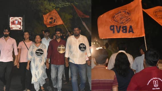 Delhi JNUSU Election 2025: जवाहरलाल नेहरू विश्वविद्यालय (JNU) में छात्रसंघ चुनाव से पहले अखिल भारतीय विद्यार्थी परिषद (ABVP) ने सोमवार (21 अप्रैल) देर रात एक भव्य मशाल यात्रा का आयोजन किया. इस यात्रा में विश्वविद्यालय के विभिन्न विभागों से सैकड़ों छात्रों ने भाग लिया. मशाल यात्रा की शुरुआत JNU के प्रसिद्ध गंगा ढाबा से हुई और यह चंद्रभागा हॉस्टल तक पहुंची.