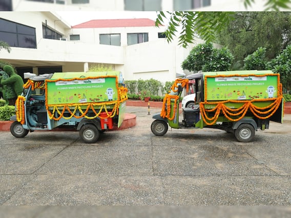 नोएडा प्राधिकरण ने फ्लोरल वेस्ट उठाने वाली गाड़ियों को भी आज से हरी झंडी दिखा दी है. प्राधिकरण की सीईओ ऋतु माहेश्वरी फ्लोरल वेस्ट उठाने वाले वाहनों को हरी झड़ी दिखाई. अब ये गाड़ियां शहर के 34 मंदिरों से रोजाना फूल और पूजा सामग्री इकठ्ठा कर के लाया करेंगी. इन सभी चीजों को नारी निकेतन भेज जाएगा, वहां फ्लोरल वेस्ट से खाद्य और अगरबत्ती बनाई जाएगी.