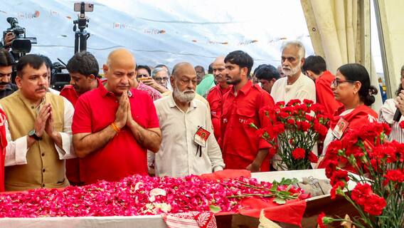 Sitaram Yechury Last Rites: देश के शीर्ष वामपंथ नेताओं में शुमार और भारतीय कम्युनिस्ट पार्टी (मार्क्सवादी) के महासचिव रहे सीताराम येचुरी का 12 सितंबर को एम्स में इलाज के दौरान निधन हो गया. शनिवार को दिल्ली स्थित पार्टी के कार्यालय पर आप नेता मनीष सिसोदिया और सांसद संजय सिंह श्रद्धांजलि देने पहुंचे. दोनों नेताओं ने उनके निधन को भरपाई न होने वाला क्षति बताया.