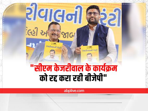 कहा- केजरीवाल की लोकप्रियता से बीजेपी चिंतितइटालिया ने आगे कहा, "फिर हमने 'विवाह' पार्टी प्लॉट, 'नक्षत्र' पार्टी प्लॉट, 'नीलकंठ' पार्टी प्लॉट और 'सरदार पटेल' बैंक्वेट हॉल आदि से संपर्क किया. सभी छह पार्टी प्लॉट मालिकों ने शुरू में सहमति व्यक्त की, लेकिन बाद में यह दावा करते हुए पीछे हट गए कि 'बीजेपी नेताओं' ने आणंद में सभी पार्टी प्लॉट मालिकों को केजरीवाल के कार्यक्रम को आयोजित नहीं करने की धमकी दी है.” इटालिया ने कहा, “अरविंद केजरीवाल की बढ़ती लोकप्रियता ने बीजेपी को चिंतित कर दिया है. गुजरात की राजनीति के इतिहास में पहली बार गारंटी शब्द को जगह मिली है क्योंकि केजरीवाल एक ऐसे नेता हैं जो अपने वादे पूरे करते हैं.