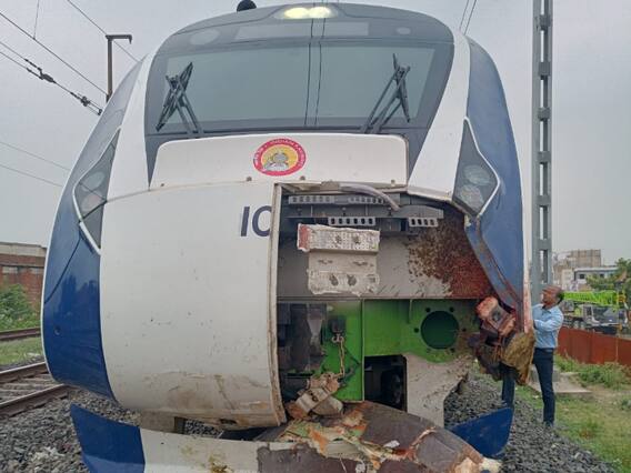 Vande Bharat Express Accident: प्रधानमंत्री नरेंद्र मोदी द्वारा सेमी-हाई स्पीड ट्रेन को हरी झंडी दिखाने के कुछ दिनों बाद आज सुबह गुजरात में वंदे भारत एक्सप्रेस के भैंसों के झुंड से टकराने के बाद उसका अगला हिस्सा क्षतिग्रस्त हो गया. ट्रेन मुंबई से गांधीनगर जा रही थी और यह घटना अहमदाबाद से आगे बटवा और मणिनगर के बीच सुबह करीब 11 बजे हुई. भैंसों का एक झुंड ट्रेन से टकरा गया, वंदे भारत एक्सप्रेस ट्रेन के सामने का हिस्सा क्षतिग्रस्त हो गया है. यहां बता दें, करीब आठ मिनट के भीतर वंदे भारत एक्सप्रेस ट्रेन आगे बढ़ गई और समय पर अपने गंतव्य गांधीनगर पहुंच गई.