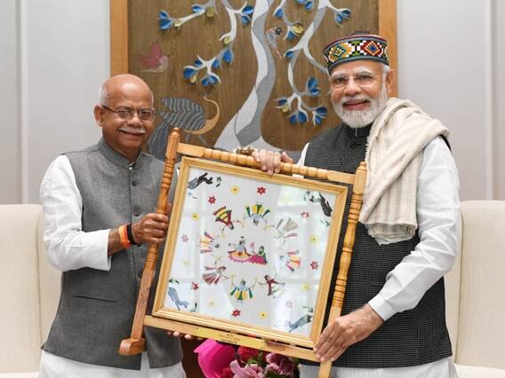 Shiv Pratap Shukla In Delhi: हिमाचल प्रदेश (Himachal Pradesh) के राज्यपाल शिव प्रताप शुक्ला दिल्ली दौरे पर हैं. रविवार को राज्यपाल शिव प्रताप शुक्ला ने देश के प्रधानमंत्री नरेंद्र मोदी (Narendra Modi) से मुलाकात की. यह मुलाकात पीएम मोदी के आधिकारिक आवास पर हुई. इस दौरान प्रदेश के राज्यपाल ने पीएम मोदी को चंबा (Chamba) का खास रुमाल स्मृति के तौर पर दिया. हिमाचल प्रदेश के जिला चंबा का रुमाल विश्व भर में अपनी पहचान बना चुका है. पीएम मोदी को भेंट किए गए चंबा रुमाल में भगवान कृष्ण (Lord Krishna) और मां राधा की तस्वीर उकेरी गई है. इसके साथ ही इस रुमाल में चारों तरफ अठखेली करते हुए हिरणों को भी दिखाया गया है.