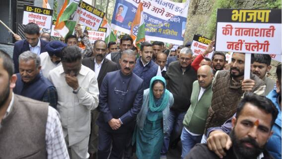 Himachal Pradesh News: प्रवर्तन निदेशालय (ED) ने कांग्रेस के नेशनल हेराल्ड अखबार और एसोसिएटेड जर्नल्स लिमिटेड से जुड़े मनी लॉन्ड्रिंग मामले में मंगलवार (15 अप्रैल) को पहली चार्जशीट दाखिल कर दी गई है. इसमें सोनिया गांधी, राहुल गांधी, सैम पित्रोदा और सुमन दुबे के नाम शामिल हैं. इसके विरोध में बुधवार (16 अप्रैल) कांग्रेस पार्टी ने देशभर में ईडी दफ्तरों के बाहर विरोध प्रदर्शन किया. इसी कड़ी में शिमला में भी मुख्यमंत्री सुखविंदर सिंह सुक्खू की अगवाई में कांग्रेसी ईडी दफ्तर पहुंचे और केंद्र सरकार के खिलाफ जमकर नारेबाजी की गई. कांग्रेस प्रदेशाध्यक्ष प्रतिभा सिंह भी प्रदर्शन में मौजूद रहीं.