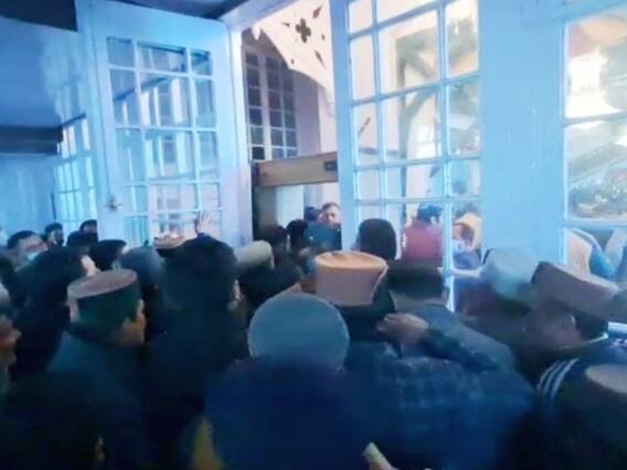 काफी देर तक समझाने के बाद भी जब समर्थक नहीं माने तो पुलिस को धक्का देकर इन्हें पीछे करना पड़ा. भीड़ इतनी बेकाबू हो गई कि ऐतिहासिक राज भवन की इमारत के कई शीशे तक टूट गए.समर्थकों की भारी भीड़ और अव्यवस्था के आगे शिमला की पुलिस भी बेबस नजर आई. इससे पहले राजभवन में तैनात पुलिसकर्मियों ने भीड़ को मुख्य गेट से अंदर आने दिया.राजभवन में सीमित लोगों के ही बैठने की जगह है.यहां होने वाले कार्यक्रम लघु और गरिमामय होते हैं,लेकिन रविवार को राजभवन में इतनी भीड़ जमा हो गई कि यहां हर जगह अव्यवस्था का आलम देखने के लिए मिला.