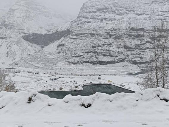 Snowfall in Lahaul Spiti: हिमाचल प्रदेश (Himachal Pradesh) के जनजातीय जिला लाहौल स्पीति ( Lahaul Spiti) में बर्फबारी हुई है. बर्फबारी की वजह से तापमान में गिरावट दर्ज की जा रही है. मौसम विज्ञान केंद्र शिमला (Shimla) ने पहले ही ऊंचाई वाले इलाकों में बर्फबारी का येलो अलर्ट जारी किया हुआ था. बर्फबारी की वजह से नेशनल हाईवे- 3 पर दारचा से सरचू और कोचर से कोकसर से रोहतांग (Rohtang) टॉप तक गाड़ियों की आवाजाही बंद की गई है.
