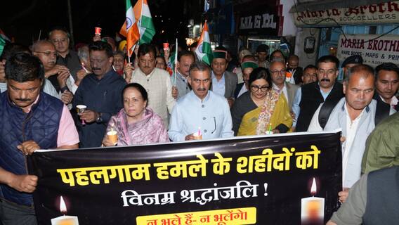 Pahalgam Terror Attack: जम्मू कश्मीर के पहलगाम में हुए आतंकी हमले के विरोध में हिमाचल प्रदेश कांग्रेस कमेटी ने आज शिमला में कैंडल मार्च निकाला और मृतकों को श्रद्धांजलि दी कैंडल मार्च में हिमाचल प्रभारी रजनी पाटिल, मुख्यमंत्री, उपमुख्यमंत्री सहित कांग्रेस के विधायक और कार्यकर्ता शामिल हुए.