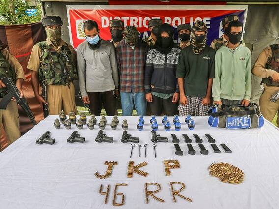Baramulla News: जम्मू कश्मीर पुलिस ने बारामूला में शराब की एक दुकान पर हुए ग्रेनेड हमले को 48 घंटे के अंदर गुरुवार को सुझलाने का दावा किया और इस सिलसिले में लश्कर-ए-तैयबा के चार आतंकवादियों और उनके एक सहयोगी को गिरफ्तार किया. पुलिस ने इसकी जानकारी दी. पुलिस के एक प्रवक्ता ने बताया कि बुर्का पहने एक आतंकवादी ने बारामूला के दीवान बाग इलाके में हाल में खुली एक शराब की दुकान पर 17 मई को ग्रेनेड फेंका था, इसके बाद वह बाइक पर इंतजार कर रहे साथी के संग मौके से भाग गया.