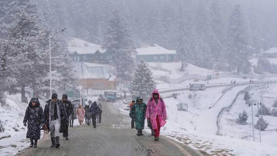 Snowfall in Gulmarg: कश्मीर में शीतकालीन हिल स्टेशन गुलमर्ग फिर से गुलजार हो गया है. ताजा भारी बर्फबारी से सफेद चादर से गुलमर्ग ढक सा गया है. वहीं इस बर्फबारी के बाद यहां पर्यटकों की संख्या में तेजी से इजाफा हुआ है. यहां सिर्फ छह दिन में 20 हजार टूरिस्ट्स पहुंचे हैं. पर्यटकों की ये संख्या लंबे समय से चल रहे 'पर्यटकों के सूखे' की कमी को पूरा कर रही है. हाल ही में हुई बर्फबारी के कारण गुलमर्ग की खूबसूरती में चार चांद लग गए. जिससे पर्यटकों ने यहां एक्टिविटी शुरू कर दीं. बर्फबारी के बाद पर्यटको को स्नो स्कीइंग, स्नोबोर्डिंग और यहां तक कि हेलीस्कीइंग के जादू में डूबे हुए देखा जा रहा है.