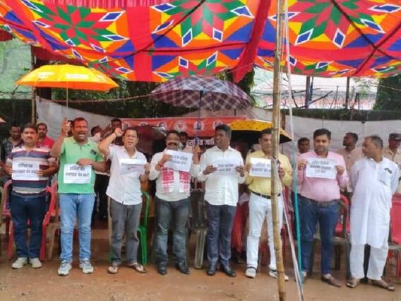 Mahadalit House Demolished BJP Protest In Jamshedpur: झारखंड (Jharkhand) में पलामू (Plamu) जिले के पांडु क्षेत्र में 50 दलित परिवारों से गांव खाली करवाने के खिलाफ पूर्वी सिंहभूम (East Singhbhum) जिले में बीजेपी के स्थानीय नेताओं और कार्यकर्ताओं ने प्रदर्शन किया. बीजेपी के अनुसूचित जाति मोर्चा ने इस घटना के विरोध में जिला कलेक्ट्रेट के बाहर धरना देते हुए नारेबाजी की. भारी बारिश के बीच धरने में राज्य सरकार के खिलाफ जमकर नारेबाजी की गई. धरने को पवन शंकर पांडेय, नगर अध्य्क्ष अक्षय खत्री ने संबोधित किया.