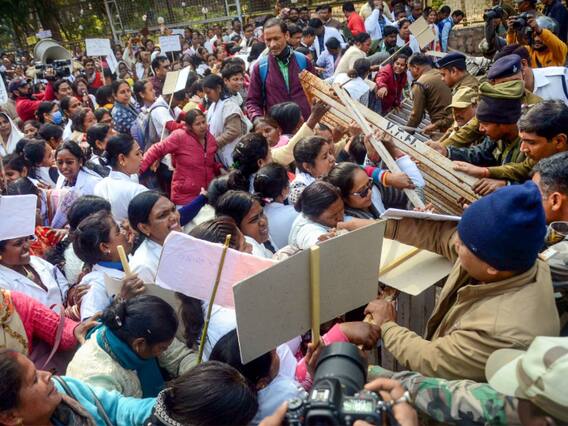 कांट्रैक्ट कर्मियों ने किया अनिश्चितकालीन हड़ताल का एलानराष्ट्रीय स्वास्थ्य मिशन के तहत विभिन्न जिलों में अनुबंध पर काम कर रहे हजारों स्वास्थ्यकर्मी रांची में इकट्ठा हुए. वे अपनी सेवा के नियमितीकरण और समायोजन को लेकर बड़े जुलूस की शक्ल में सीएम हाउस की ओर बढ़ रहे थे तो पुलिस ने उन्हें रोक दिया. इसके बाद प्रदर्शनकारी राजभवन की ओर बढ़े. कुछ प्रदर्शनकारियों ने बैरिकेडिंग लांघने की कोशिश की तो पुलिस ने हल्का बल प्रयोग किया. प्रदर्शनकारियों का कहना था कि मुख्यमंत्री सोरेन ने तीन महीने के भीतर इन्हें नियमित करने का वादा किया था, लेकिन तीन साल में भी यह पूरा नहीं किया गया है. अब कर्मियों ने राजभवन के पास धरना देते हुए 17 जनवरी से अनिश्चितकालीन हड़ताल और आमरण अनशन का आह्वान किया है.