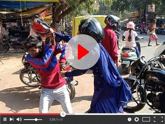 युवक को पिटता देख आस-पास के लोग इकट्ठा हो जाते हैं और मामला जानने की कोशिश करते हैं. इस पर महिला रुकती नजर नहीं आती है और लगातार हेलमेट से वार करती चली जाती है. मामला थोड़ा सा शांत होने पर लोग पिट रहे उस युवक से पूछते हैं तो उसका यही जवाब होता है कि जो कर रहे थे वो भाग गये मैं नहीं कर रहा था बस मुझे पीटा जा रहा है.