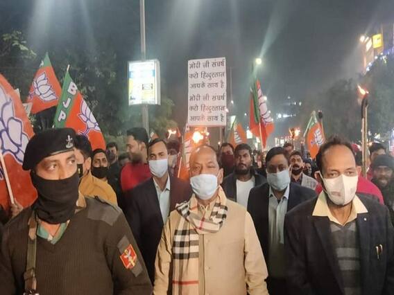 PM Narendra Modi Security Breach BJP Protest in Jharkhand: प्रधानमंत्री नरेंद्र मोदी (PM Narendra Modi) की सुरक्षा में चूक को लेकर भाजपा (BJP) नेताओं और कार्यकर्ताओं में खासा आक्रोश देखने को मिल रहा है. झारखंड (Jharkhand) के जमशेदपुर (Jamshedpur) में बृहस्पतिवार को भाजपा की तरफ से मशाल जुलूस और जनाक्रोश रैली निकाली गई. इस दौरान भाजपा नेताओं ने पंजाब सरकार और कांग्रेस (Congress) के खिलाफ जमकर नारेबाजी करते हुए निशाना साधा. इस मौके पर झारखंड के पूर्व मुख्यमंत्री और पार्टी के राष्ट्रीय उपाध्यक्ष रघुवर दास (Raghubar Das) समेत सांसद विद्युत वरण महतो और भारी संख्या में पार्टी के नेता एवं कार्यकर्ता शामिल हुए.