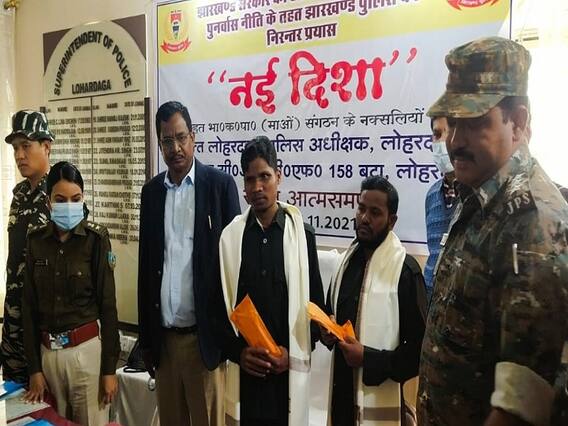 Jharkhand Naxalite Surrender: इनामी नक्सलियों (Naxalite) ने बुधवार को झारखंड पुलिस (Jharkhand Police) के सामने सरेंडर (Surrender) कर दिया. इनमें भाकपा माओवादी संगठन के सब जोनल कमांडर विष्णुदयाल नगेशिया (Vishnudayal Nagesia) और एरिया कमांडर आकाश नगेशिया (Akash Nagesia) उर्फ समेश्वर नगेशिया शामिल हैं. दोनों ने लोहरदगा के उपायुक्त उपायुक्त दिलीप कुमार टोप्पो, पुलिस अधीक्षक प्रियंका मीणा (Priyanka Meena) और सीआरपीएफ कमांडेंट प्रभात कुमार ईंदवार के सामने आत्मसमर्पण किया. ये दोनों डेढ़ दर्जन से भी ज्यादा नक्सली वारदातों में वांछित थे और इनपर झारखंड पुलिस ने एक-एक लाख रुपये का इनाम घोषित किया था.