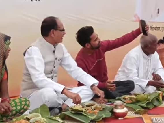 MP News: लकड़ी चोरी के आरोपी का मुख्यमंत्री शिवराज सिंह संग बैठकर भोजन करने की तस्वीर आने पर हंगामा मच गया है. सोशल मीडिया पर वायरल हो रहे वीडियो में लकड़ी चोरी का आरोपी मुख्यमंत्री के साथ बहुत सहज है. लकड़ी चोरी का आरोपी भोजन करते समय मुख्यमंत्री के साथ बातचीत करते नजर आ रहा है. अलग-अलग एंगल से सेल्फी लेते हुए भी लकड़ी चोरी के आरोपी को देखा जा सकता है. वीडियो वायरल होने के बाद मुख्यमंत्री की सुरक्षा में चूक से जोड़कर देखा जा रहा है.