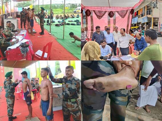 Agniveer Bharti Rally 2022: मध्य प्रदेश (Madhya Pradesh) के सागर (Sagar) जिले में इन दिनों अग्निवीर भर्ती रैली (Agniveer Bharti Rally) चल रही है. इसमें 14 जिलों के 73 हजार युवा परीक्षा देने आए हैं. युवा अपनी हाइट बढ़ाने के लिए फर्जीवाड़ा भी कर रहे हैं, लेकिन सेना की नजरों से बच नहीं पा रहे हैं. परीक्षा में चयनित होने के लिए कुछ युवा अभ्यर्थी शरीर से छेड़छाड़ कर अपनी लंबाई बढ़ाने के चक्कर में पकड़े गए हैं. इसकी वजह से उनको अग्निवीर भर्ती रैली से तत्काल बाहर किया गया. अग्निवीर भर्ती रैली में युवाओं की लंबाई, सीने के नाप निर्धारित मानकों के अनुरूप ही लिए जा रहे हैं. कुछ ने अपने शरीर से छेड़छाड़ तक कर ली और हाइट बढ़ाई, लेकिन पकड़े गए.