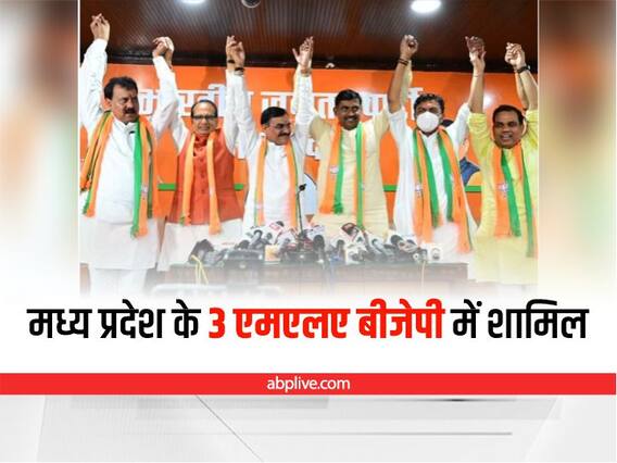 भोपाल: राष्ट्रपति चुनाव (President Election) से पहले मध्य प्रदेश (Madhya Pradesh) में तीन विधायक मंगलवार को भारतीय जनता पार्टी (BJP) में शामिल हो गए. राजधानी भोपाल में बीजेपी कार्यालय में मुख्यमंत्री शिवराज सिंह चौहान (Shivraj Singh Chouhan) और बीजेपी के प्रदेश अध्यक्ष वीडी शर्मा (VD Sharma) की मौजूदगी में इन विधायकों ने बीजेपी की सदस्यता ली. बीजेपी में शामिल होने वालों में छतरपुर की बिजावर विधानसभा सीट से जीते समाजवादी पार्टी के विधायक राजेश कुमार शुक्ला, भिंड से बीएसपी विधायक संजीव सिंह कुशवाहा और सुसनेस से निर्दलीय विधायक विक्रम सिंह राणा शामिल हैं. इन विधायकों के बीजेपी में शामिल होने की जानकारी प्रदेश के गृहमंत्री नरोत्तम मिश्रा ने दी थी.