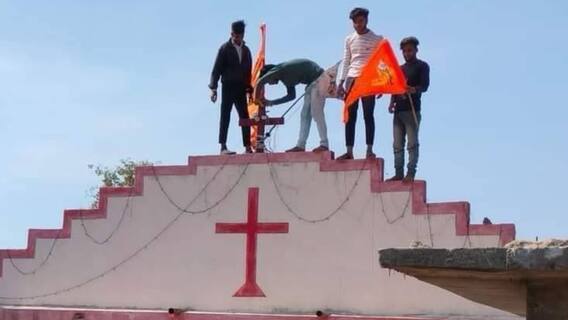 Madhya Pradesh: अयोध्या (Ayodhya) में राम मंदिर (Ram Mandir) के निर्धारित रामलला की प्राण प्रतिष्ठा (Ramlala Pran Pratishtha) समारोह से एक दिन पहले रविवार को मध्य प्रदेश (Madhya Pradesh) के झाबुआ (Jhabua) जिले में युवाओं के एक समूह ने क्रिश्चियन क्रॉस लगे एक 'चर्च' के ऊपर भगवा झंडा फहरा दिया. इसके बाद जब लोग दोबारा ईसाई प्रतीक पर झंडा लगाने के लिए इमारत पर चढ़े, तो भीड़ ने जय श्री राम के नारे लगाए. यह घटना जिले के राणापुर पुलिस थाना क्षेत्र के दबतलाई गांव में हुई.