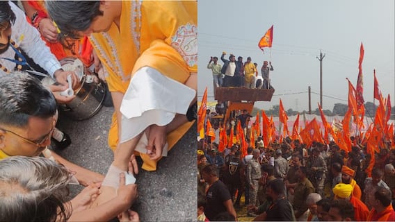 Dhirendra Krishna Shastri: 21 नवंबर से शुरू हुई बागेश्वर धाम के पीठाधीश्वर पंडित धीरेंद्र कृष्ण शास्त्री की पदयात्रा का आज तीसरा दिन है. पहले दिन धीरेंद्र शास्त्री 20 किलोमीटर तक पैदल चले, जिससे उनके पैरों में छाले पड़ गए हैं. दूसरे दिन की यात्रा की शुरुआत होने से पहले डॉक्टरों की टीम ने उनके पैरों में पट्टी बांधी. पैरों में छाले पड़ने के बाद भी उनकी पदयात्रा जारी है.