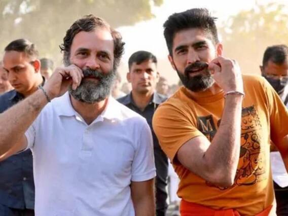 Rahul Gandhi Viral Photo: भारत जोड़ो यात्रा पर निकले कांग्रेस के पूर्व राष्ट्रीय अध्यक्ष राहुल गांधी का अंदाज बदल रहा है, दाढ़ी उनकी पढ़ रही है और मूछों पर भी ताव देने से नहीं चूक रहे हैं.मध्यप्रदेश में भारत जोड़ो यात्रा के तीसरे दिन उनके हमकदम बने बॉक्सर विजेंदर सिंह. फिर क्या था बॉक्सर विजेंदर सिंह के साथ राहुल गांधी ने भी पहले अपने मसल्स दिखाए और बॉक्सर का अंदाज अपनाते हुए मूछों पर ताव दिया.