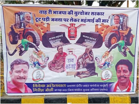 इंदौर: कांग्रेस (Congress) ने पोस्टरों के जरिए महंगाई (Inflation) को लेकर मध्य प्रदेश सरकार (MP Government) पर तंज कसा है.देश में बढ़ती महंगाई के विरोध में कांग्रेस ने शहर में पोस्टर लगाए हैं. इनपर लिखा है, 'वाह री भाजपा सरकार, टूट पड़ी जनता पर लेकर महंगाई की मार'.ऐसे नारे लिखे होर्डिंग शहर में कई जगह लगाए गए हैं.