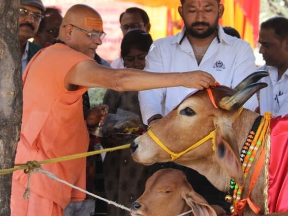 Cow Hug Day in Jabalpur: भारतीय पशु कल्याण बोर्ड के बैकफुट पर आने के बावजूद मध्यप्रदेश के जबलपुर शहर में वैलेंटाइन डे को 'काऊ हग डे' (Cow Hug Day) यानी गौ आलिंगन दिवस के रूप में मनाया गया. मध्यप्रदेश गोपालन और पशुधन संवर्धन बोर्ड के उपाध्यक्ष स्वामी अखिलेश्वरानंद गिरि महाराज ने गौ आलिंगन करते हुए कहा कि वैलेंटाइन डे वासना का प्रतीक है, जबकि गाय प्रेम, करुणा, ममता और वात्सल्य की मूर्ति है.