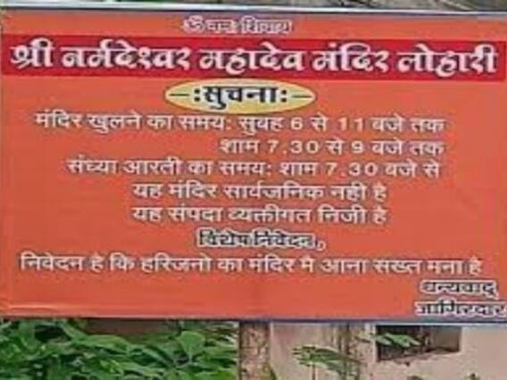 लोहारी गांव में श्री नर्मदेश्वर महादेव मंदिर का निर्माण तीन माह पहले हुआ है. ग्रामीण यहां रोजाना दर्शन के लिए जाते हैं. बुधवार शाम को एक फ्लैक्स का फोटो सोशल मीडिया पर वायरल हुआ. इस पर लिखा था,''यह मंदिर सार्वजनिक नहीं है. यह संपदा व्यक्तिगत निजी है. ऐसे में विशेष निवेदन है कि हरिजनों का मंदिर में आना सख्त मना है. धन्यवाद जागिरदार.''