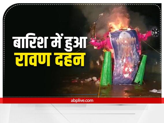MP News: मध्य प्रदेश के दमोह में परंपरागत रूप से हर वर्ष नवरात्रि की नवमी के दिन होने वाला रावण दहन का कार्यक्रम मंगलवार को संपन्न हुआ. पूरे देश में प्रसिद्द दमोह के रावण दहन को लेकर खासी तैयारियां की जाती है और यहां देश के अलग अलग हिस्सों से श्रद्धालु विशालकाय रावण के पुतले के दहन के साथ आकर्षक आतिशबाजी का नजारा देखने को आते हैं, लेकिन इस बार बारिश की वजह से बरसते पानी में ही रावण का दहन करना पड़ा. मंत्री प्रहलाद पटेल ने किया पूजादरअसल मंगलवार की सुबह से हो रही इलाके में तेज बारिश के बाद सारी व्यवस्थाएं चौपट हो गई और तैयार किया गया रावण का पुतला भी क्षतिग्रस्त हो गया, लेकिन दमोह के लोगों का उत्साह कम नहीं हुआ और परम्परा के मुताबिक़ प्रभु श्री राम की शोभायात्रा शहर की सड़कों पर निकली और ये यात्रा दमोह के रामलीला मैदान तहसील ग्राउंड पहुंची. केंद्र सरकार के जल शक्ति राज्य मंत्री प्रहलाद पटेल विधायक अजय टंडन सहित प्रशासन के आला अधिकारियों और कई दिग्गजों ने मर्यादा पुरुषोत्तम श्री राम का पूजन अभिषेक किया.