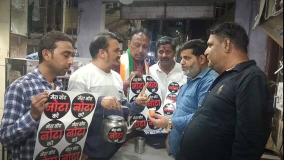 MP Lok Sabha Elections 2024: इंदौर में NOTA को लेकर घमासान जारी है एक तरफ जहां कांग्रेस लगातार NOTA का बटन दबाने के लिए जागरूकता अभियान चला रही है तो वहीं अब बीजेपी का अनुसूचित जाति मोर्चा इसके खिलाफ मानव श्रृंखला बनाने की तैयारी कर रहा है. दरअसल इंदौर में जब से कांग्रेस के प्रत्याशी ने बीजेपी का दामन थामा है. उसके बाद से कांग्रेस अपने प्रत्याशी के अपहरण का आरोप बीजेपी पर लगा रही है और अब कह रही है कि लोग NOTA का बटन दबाकर भारतीय जनता पार्टी को सबक सिखाएं. इस सिलसिले में कांग्रेस नेताओं ने चाय पर चर्चा के जरिए लोगों को NOTA का बटन दबाने के लिए प्रेरित किया.
