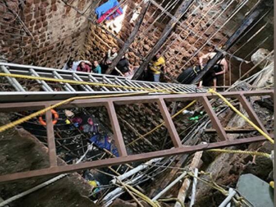 ये सभी लोग मंदिर के अंदर स्थित बावड़ी के ऊपर डले स्लैब पर बैठकर पूजा कर रहे थे. इस दौरान स्लैब अचानक से धंस गया. इससे 30 से ज्यादा लोग बावड़ी में गिर पड़े. बावड़ी करीब 40 फीट गहरी है. उसमें 4 से 5 फिट तक पानी भरा हुआ था. घटना की सूचना पाकर पुलिस ने स्थानीय लोगों की मदद से रस्सियों के सहारे कुएं से लोगों को निकालने को कोशिश की. कुएं से करीब 18 घायलों को निकाला गया. इस हादसे में अब तक 35 लोगों की मौत हो चुकी है. वहीं घायल हुए लोगों में से दो लोगों की मौत अस्पताल में इलाज के दौरान हुई.