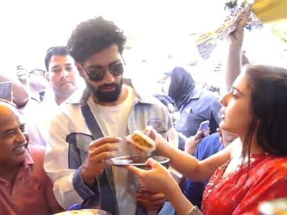 Vicky Kaushal and Sara Ali Khan In Indore: अभिनेता विक्की कौशल (Vicky Kaushal) और सारा अली खान (Sara Ali Khan) बुधवार को इंदौर (Indore) के 56 दुकान पर पहुंचे. यहां उन्होनें प्रसिद्ध इंदौरी पोहे और जलेबी का लुत्फ उठाया. वहीं सारा अली खान ने फेमस हॉट डॉग और पानी पूरी का भी भरपूर आनंद लिया.