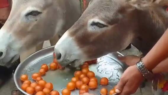 मनोकामना पूरी होने पर खिलाए गुलाब जामुनयह वीडियो मध्य प्रदेश के मंदसौर की है. मंदसौर की यह वीडियो इन दिनों सोशल मीडिया पर चर्चा का विषय बनी हुई है. जहां मनोकामना पूरी होने पर गधों को खूब गुलाब जामुन खिलाए जाते हैं. इस मामले में भी कुछ ऐसा ही था. जहां मानसून में देरी की वजह से बारिश नहीं हो रही थी.