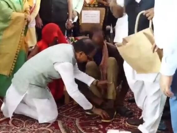 मुख्यमंत्री ने खुद पहनाई चप्पल