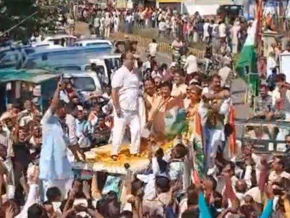 दरअसल, सोमवार को नामांकन पत्र दाखिल करने के आखिरी दिन कांग्रेस उम्मीदवार अजय टंडन समर्थकों के भारी मजमें के साथ कलेक्ट्रेट जा रहे थे. इस दौरान आम लोगों और पार्टी कार्यकर्ताओं में जबदस्त उत्साह था. ढोल-नगाड़ों के साथ टंडन खुली जीप में लोगों के अभिवादन को स्वीकार कर रहे थे. इसी बीच उत्साह ऐसा बढ़ा कि अचानक वो जीप की छत पर आ गए. इस दौरान अजय टंडन बैंड की धुन पर नाचने लगे और देखते ही देखते उन्होंने ताल ठोंकना शुरू कर दिया.