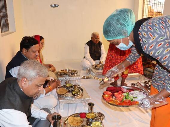 इस दौरान राज्यपाल ने प्रधानमंत्री आवास योजना के लाभार्थी धर्मेंद्र शाक्य के घर भोजन किया.राज्यपाल के लिए धर्मेंद्र शाक्य की पत्नी जावित्री देवी ने घर पर मिट्टी के चूल्हे पर अपने हाथ से बनाया खाना खिलाया.खाने में भिंडी की सब्जी,बैगन का भरता,दाल, कढ़ी और चावल शामिल थे.जावित्री देवी ने अपने हाथों से चूल्हे पर रोटियां बनाईं.राज्यपाल मंगू भाई पटेल के लिए चंबल अंचल का देसी भोजन परोसा गया.
