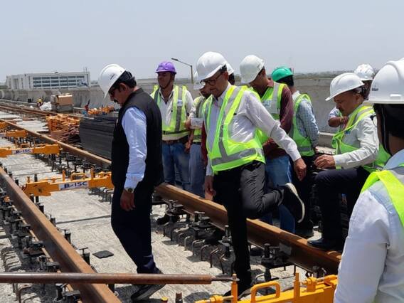 Indore News: इंदौर मेट्रो ट्रेन (Indore Metro) के सुपर प्रायोरिटी कॉरिडोर पर रेल लाइन बिछाने का काम शुरू हो गया है. सांसद शंकर लालवानी (Shankar Lalwani) ने विधि विधान के साथ इस काम की शुरुआत की. जमीन से करीब 40 फीट ऊपर बने वायडक्ट में पटरियां बिछाने का काम शुरू कर दिया गया है. क्रेन की सहायता से पटरियों को पहले ऊपर ले जाया जाता है और एक विशेष वेल्डिंग मशीन से इन्हें आपस में वेल्ड किया जाता है. सांसद शंकर लालवानी ने बताया कि मेट्रो का काम बेहद तेजी से चल रहा है और पटरियां बिछाने की शुरुआत हो गई है.