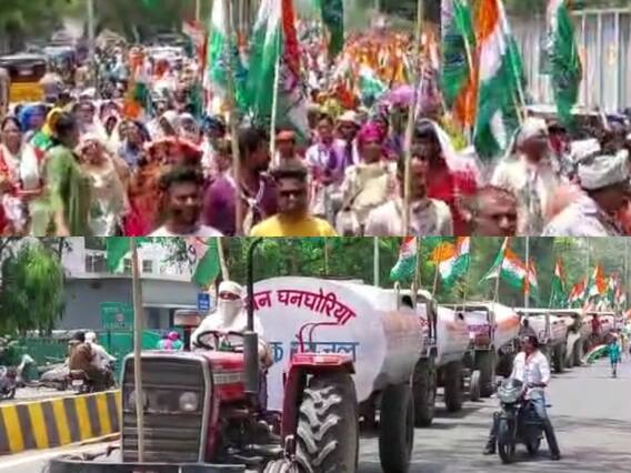 MP News: पंचायत और नगरीय निकाय के चुनाव ने कांग्रेस खेमे में सरगर्मी बढ़ा दी है. कांग्रेस ने जबलपुर में नगर निगम प्रशासन के खिलाफ मोर्चा खोल दिया है. तीन विधायकों की अगुवाई में सैकड़ों कांग्रेस कार्यकर्ताओं ने नगर निगम मुख्यालय पर प्रदर्शन किया. कांग्रेसी कार्यकर्ता बड़ी संख्या में पानी के खाली टैंकर लेकर नगर निगम पहुंचे थे. तीन कांग्रेस विधायक लखन घनघोरिया, संजय यादव और विनय सक्सेना के नेतृत्व में रैली की शक्ल में नगर निगम पहुंचे कार्यकर्ताओं ने प्रशासन के खिलाफ जमकर नारेबाजी की.