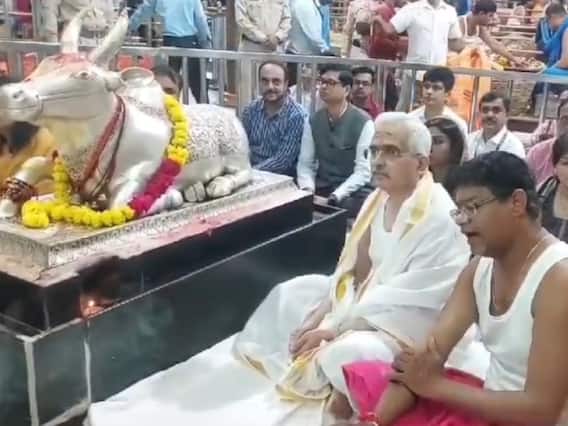 MAHAKAL TEMPLE: उज्जैन के महाकालेश्वर मंदिर में शनिवार को वीआईपी का तांता लगा रहा. आरबीआई के गवर्नर शक्तिकांत दास सहित सेना के अफसर भी भगवान महाकाल का आशीर्वाद लेने के लिए पहुंचे. इस दौरान उज्जैन के प्रमुख इलाकों में सेना के जवानों ने चौकसी की. उज्जैन के महाकालेश्वर मंदिर में लेफ्टिनेंट जनरल राणा प्रताप कलिता ने भस्म आरती में सम्मिलित होकर पूजा अर्चना की. उनके महाकालेश्वर मंदिर से जाने के बाद आरबीआई गवर्नर शक्तिकांत दास मंदिर पहुंचे. उन्होंने गर्भगृह में विधि विधान के साथ पूजा अर्चना की. महाकालेश्वर मंदिर के प्रशासक संदीप सोनी ने बताया कि गवर्नर ने परिवार सहित भगवान महाकाल का आशीर्वाद लिया. इसके बाद सीडीएस अनिल चौहान ने भी महाकालेश्वर मंदिर पहुंचकर पूजा अर्चना की.