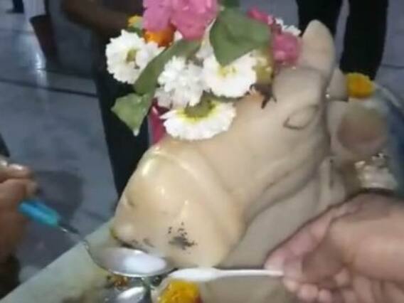 फिलहाल इस तरह के कई वीडियो सोशल मीडिया (Social Media) पर वायरल हो रहे हैं. बता दें कि खंडवा जिले के शिव मंदिरों में स्थापित नंदी की मूर्ति के दूध पीने के वीडियो तेजी से वायरल हो रहे हैं. इसको देखकर अन्य लोगों ने भी शिव मंदिरों में जाकर नंदी को दूध-पानी पिलाने की कोशिश की. वहीं अब कई राज्यों से इस तरह की खबरें सामने आ रही हैं.