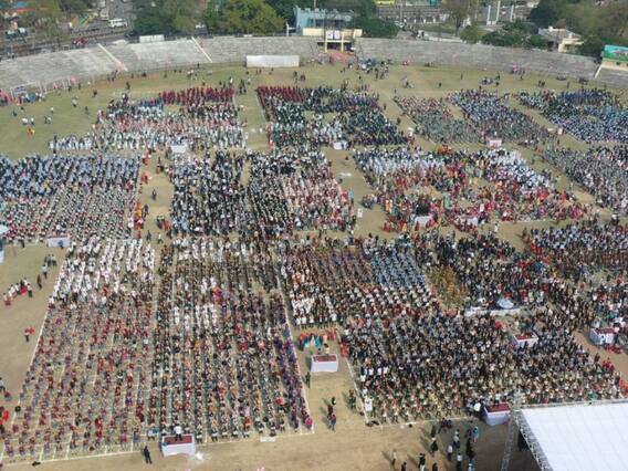 इंदौर के सेल्फ डिफेंस ट्रेनिंग में शहर के जिला कलेक्टर और जनप्रतिनिधि ने कार्यक्रम में पहुंच कर महिलाओं और छात्राओं की हौसला अफजाई की. इस मौके पर कलेक्टर डॉक्टर इलैयाराजा टी ने बताया कि इंदौर शहर के स्कूलों की बेटियों और महिलाओं को आत्मरक्षा के लिए सेल्फ डिफेंस का वर्कशॉप आयोजन किया गया है, इस वर्कशॉप में शनिवार (16 दिसंबर) को नेहरू स्टेडियम में 17 हजार से अधिक महिलाओं और बेटियां शामिल हुईं. उन्होंने बताया कि इस ट्रेनिंग के जरिये हमारी कोशिश बेटियों की हौसला अफजाई करना है. इस कार्यक्रम में सौ स्कूलों की छात्राओं ने हिस्सा लिया, जहां उन्हें सेल्फ डिफेंस की ट्रेनिंग दी गई. इसमें रिकॉर्ड लगभग 18 हजार से छात्राओं और महिलाओं ने हिस्सा लिया. इसको लंदन के वर्ल्ड बुक ऑफ रिकॉर्ड्स में दर्ज किया गया है.