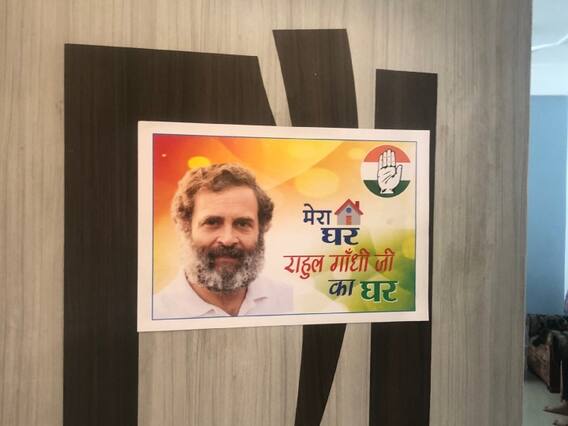 उस पर लिखा है 'मेरा घर राहुल का घर'. बता दें कि नोटिस के बाद मध्य प्रदेश में कांग्रेसी नेता अभियान चला रहे हैं. अभियान के तहत कांग्रेसी अपने घरों के आगे मेरा घर राहुल गांधी का घर का बैनर पोस्टर लगा रहे हैं. बाकायादा राहुल गांधी को रहने के लिए घर की पेशकश भी कर कर रहे हैं. राजधानी भोपाल में कांग्रेसी नेता रविन्द्र साहू झूमरवाला ने अपने घर की नेम प्लेट की जगह राहुल गांधी के नाम की नेम प्लेट लगा दी. पता है- एच124/सी साकेत नगर, भोपाल. रविन्द्र साहू ने अपना घर ऑफर करते हुए कहा कि राहुल गांधी जब चाहें आकर रह सकते हैं.