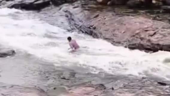 साथ ही देखा जाता है कि लोग इन झरनो में बारिश का आनंद लेने और नहाने के लिए अपनी जान की परवाह किए बगैर झरनों में उतर जाते हैं ऐसा ही एक वीडियो सोशल मीडिया पर वायरल हो रहा है जिसमें एक युवक बरसाती झरने में बहता हुआ दिखाई दे रहा है और उसके पीछे-पीछे बचाने के लिए एक व्यक्ति दौड़ लगाता हुआ भी दिखाई दे रहा है.