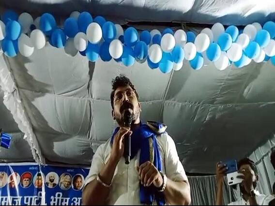 Chandrashekhar Azad in Shajapur: मध्य प्रदेश (Madhya Pradesh) में 2023 में विधानसभा चुनाव है. इससे पहले राजनीतिक दल प्रदेश में सक्रिय होने लगे हैं. इस बीच मध्य प्रदेश के शाजापुर पहुंचे भीम आर्मी भारत एकता मिशन (Bhim Army Bharat Ekta Mission) और आजाद समाज पार्टी (Azad Samaj Party) के राष्ट्रीय अध्यक्ष चंद्रशेखर आजाद (Chandrashekhar Azad) ने आईटीआई में महापंचायत को संबोधित किया. देर रात चली महापंचायत में मध्य प्रदेश सहित देश के अलग-अलग राज्यों से लोग चंद्रशेखर आजाद का भाषण सुनने के लिए पहुंचे थे.