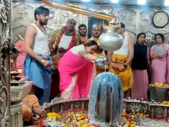 MP News: रविवार को अभिनेत्री जया प्रदा उज्जैन के महाकालेश्वर मंदिर पहुंची. वहां उन्होंने भगवान महाकाल का विधि विधान से पूजन भी किया. इस दौरान उन्होंने प्रधानमंत्री नरेंद्र मोदी (Narendra Modi) को धन्यवाद दिया. अभिनेत्री जया प्रदा (Jayaprada) लगातार भगवान महाकाल का आशीर्वाद लेने के लिए उज्जैन आ रही हैं. 2 माह पहले भी उन्होंने महाकालेश्वर मंदिर पहुंचकर भगवान महाकाल के दर्शन किए थे. रविवार को भी जया प्रदा ने गर्भ गृह में भगवान महाकाल का पंचामृत अभिषेक किया. इसके बाद उन्होंने नंदीहाल में बैठकर भगवान शिव की आराधना की. उन्होंने मीडिया से बातचीत के दौरान कहा कि प्रधानमंत्री नरेंद्र मोदी ने महाकाल लोक का निर्माण कराया. इसके लिए उन्होंने पीएम मोदी का धन्यवाद किया.