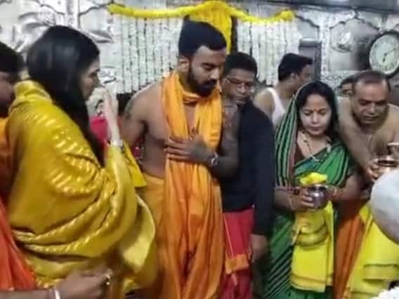 KL Rahul Mahakal Mandir Darshan: भारतीय टीम (Indian Cricket Team) के क्रिकेटर केएल राहुल (KL Rahul) ने पत्नी और एक्ट्रेस अथिया शेट्टी (Athiya Shetty) के साथ भगवान महाकाल (Mahakelshwar Jyotirlinga) का आशीर्वाद लिया. इस दौरान वे भस्मा आरती (Mahakal Bhasma Aarti) में भी शामिल हुए. हाल ही में दोनों नव दांपत्य सूत्र में बंधे हैं.