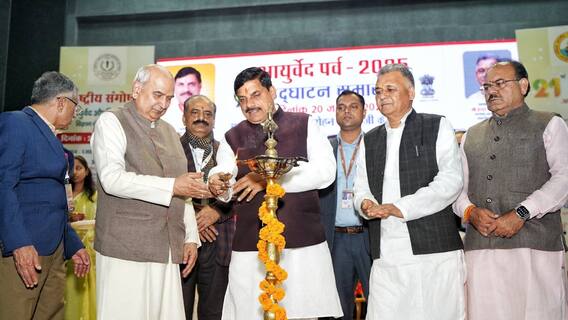 भोपाल में सोमवार को पंडित खुशी लाल शर्मा शासकीय आयुर्वेदिक महाविद्यालय में आयुर्वेद पर्व 2025 के अंतर्गत राष्ट्रीय सेमिनार एवं आरोग्य मेले का शुभारंभ किया गया. इस कार्यक्रम में मध्य प्रदेश के मुख्यमंत्री डॉ मोहन यादव, कैबिनेट मंत्री इंदर सिंह परमार सहित चिकित्सक और कर्मचारी मौजूद थे.