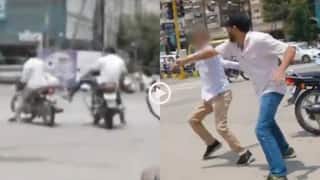 जानकारी के मुताबिक, यह घटना इंदौर शहर के एक व्यस्त चौराहे की है. वीडियो में देखा जा सकता है कि दो युवक अपनी-अपनी बाइक पर जा रहे थे. तभी एक बाइक वाले ने चलते-चलते दूसरी बाइक को लात मार दी, जिससे दूसरा बाइक वाला अपना संतुलन खो बैठा. इसके बाद दोनों ने गाड़ी रोककर चौराहे पर ही बहस शुरू कर दी. बात कुछ ही सेकंड में हाथापाई में बदल गई.