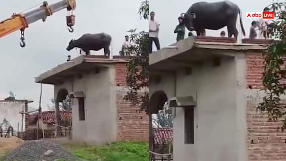 दरअसल एक भैंस सीढ़ियों के रास्ते छत पर चढ़ गई, लेकिन चढ़ने के बाद में खुद नीचे नहीं उतर पाई और भैंस को उतारने के लिए क्रेन बुलवानी पड़ी. इस घटना का वीडियो भी खूब वायरल हो रहा है. देखें वीडियो.