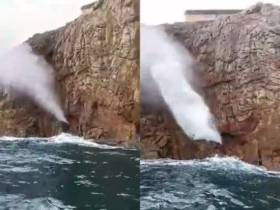 इस जगह को 'निवती रॉक्स' कहा जाता है. एक नाव पर बैठे लोगों ने ये वीडियो बनाया है, जिसमें साफ दिख रहा है कि इस जगह पर विशाल चट्टान से लहरों के छींटे के रूप में पानी निकल रहा है. आरपीजी एंटरप्राइजेज के चेयरमैन हर्ष गोयनका ने इस वीडियो को रीट्वीट किया है, जिसे 16,800 से ज्यादा बार देखा जा चुका है. इस वीडियो को डॉक्टर मधु टेक चंदानी नाम की महिला ट्विटर यूजर ने हर्ष गोयनका को टैग करते हुए लिखा, "@hvgoenka महाराष्ट्र के सिंधुदुर्ग जिले में वेंगुर्ला के तट पर इस स्थान को 'निवती रॉक्स' कहा जाता है. हर लहर जो आती है पानी के इस जेट को बनाती है. अद्भुत भारत."